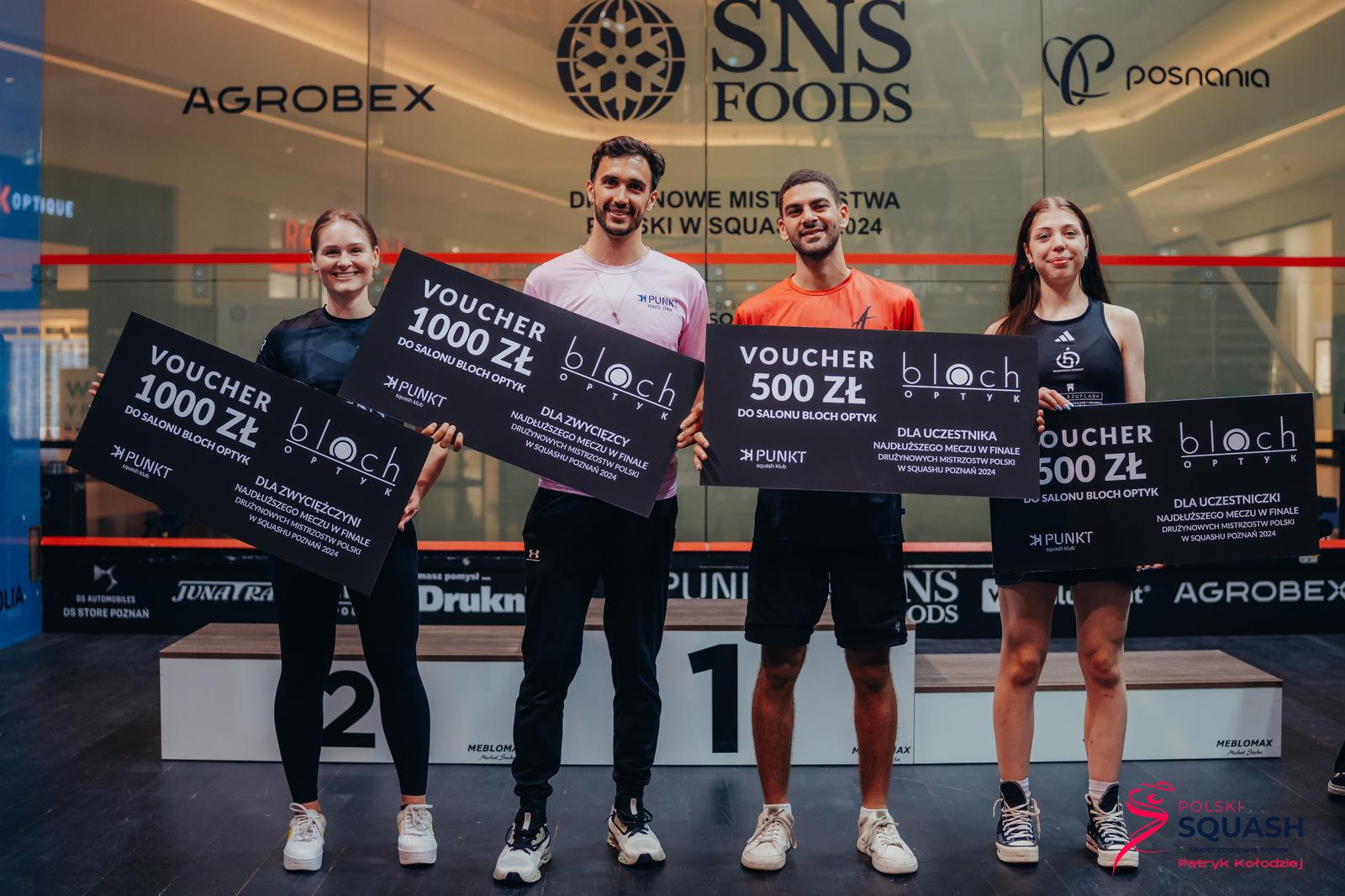 Bloch Optyk był sponsorem Drużynowych Mistrzostw Polski w squashu, które odbyły się w centrum handlowym Posnania. Ufundowaliśmy również nagrody dla zwycięskich zespołów, dla uczestników najdłuższego meczu w finale oraz na konkurs dla kibiców.