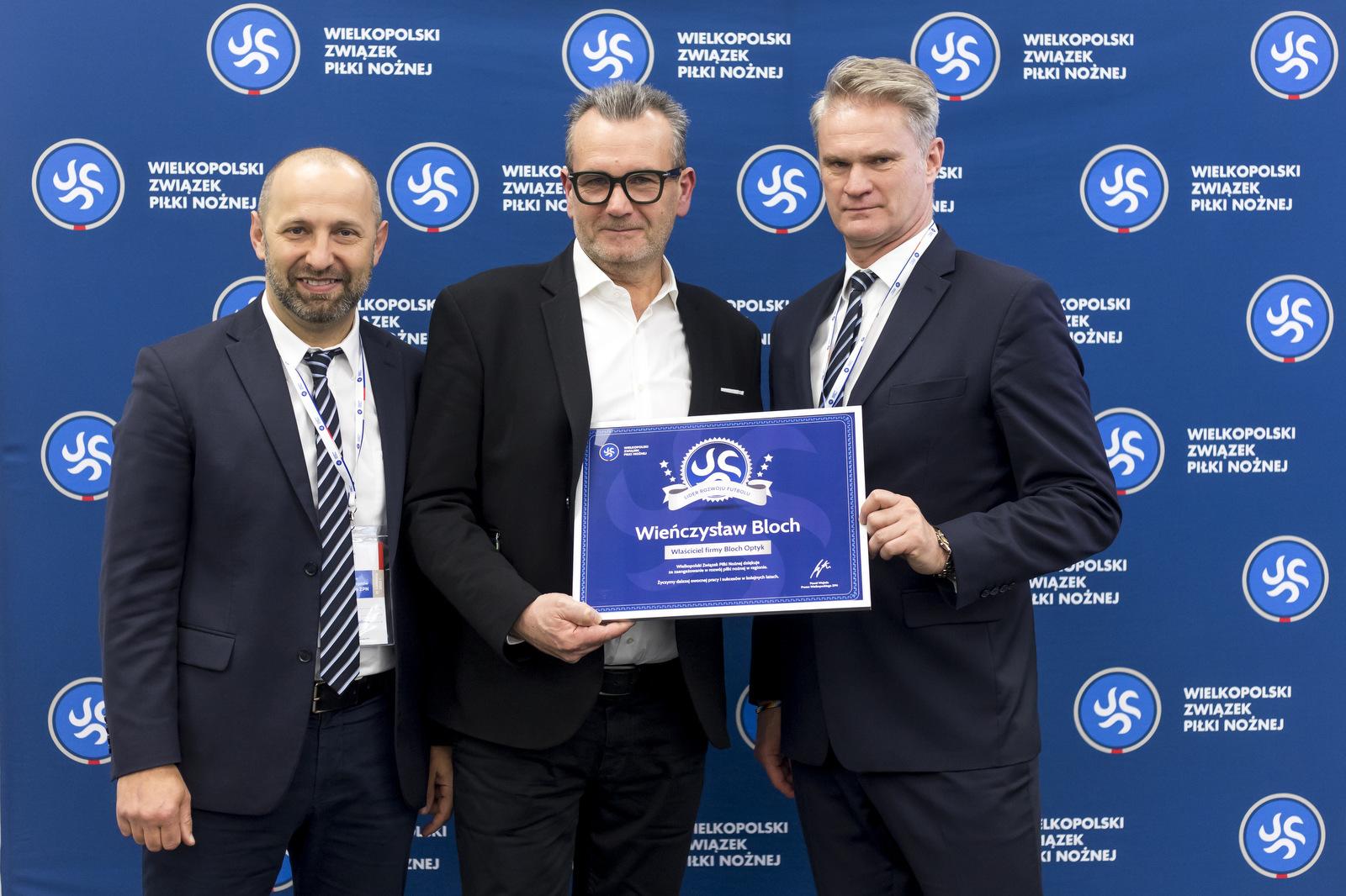 Wieńczysław Bloch został wyróżniony tytułem „Lider Rozwoju Futbolu”! Wielkopolski Związek Piłki Nożnej docenił działania wspierające projekty piłkarskie w naszym regionie oraz wyjątkową sympatię wobec piłki nożnej. Właściciel sieci salonów Bloch Optyk odebrał wyróżnienie z rąk prezesa WZPN Pawła Wojtali podczas Walnego Zgromadzenia Delegatów w zeszłym tygodniu.